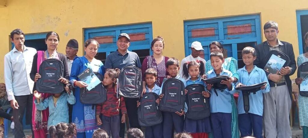 यु के निवासी राइकाे सहयोगमा १०० जना बिद्यार्थीलाई स्टेसनरी सामाग्री सहयोग