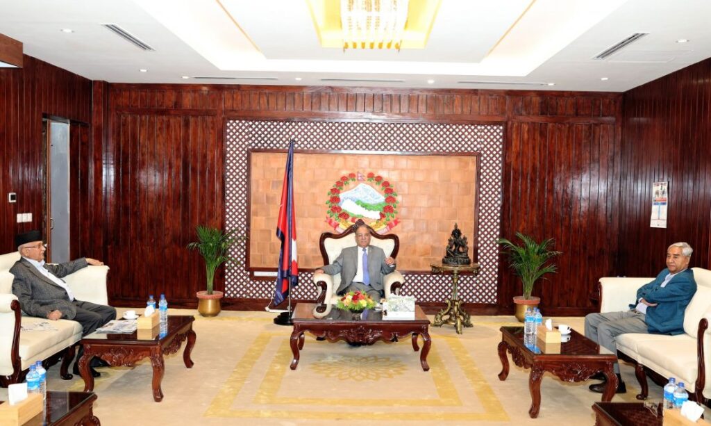प्रधानमन्त्री प्रचण्डलाई भेट्न ओली र देउवा बालुवाटारमा